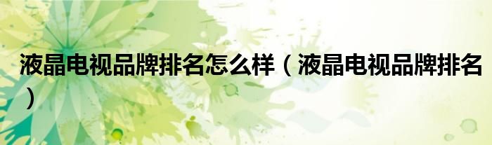 液晶电视品牌排名怎么样(液晶电视品牌排名)