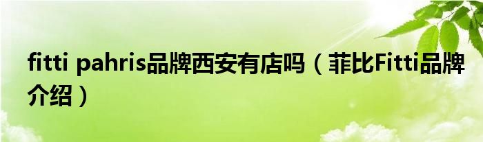 大家好,小源来为大家解答以上问题。fitti pahris品牌西安有店吗,菲比Fitti品牌介绍很多人还不知道,现在让我们一起来看看吧!