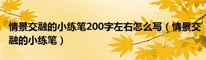情景交融的小练笔200字左右怎么写,情景交融的小练笔这个很多人还不知道,小飞来为大家解答以上的问题。现在让我们一起来看看吧!