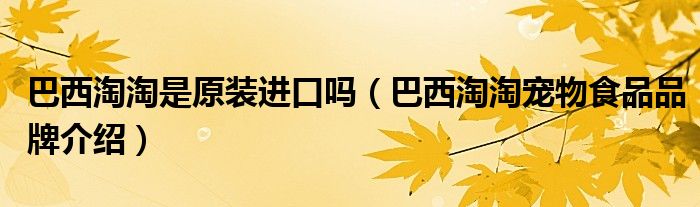 大家好,小源来为大家解答以上问题。巴西淘淘是原装进口吗,巴西淘淘宠物食品品牌介绍很多人还不知道,现在让我们一起来看看吧!