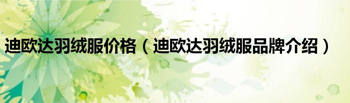 大家好,小源来为大家解答以上问题。迪欧达羽绒服价格,迪欧达羽绒服品牌介绍很多人还不知道,现在让我们一起来看看吧!