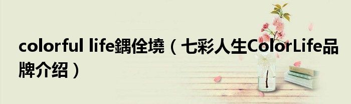 大家好,小源来为大家解答以上问题。colorful life鍝佺墝,七彩人生ColorLife品牌介绍很多人还不知道,现在让我们一起来看看吧!