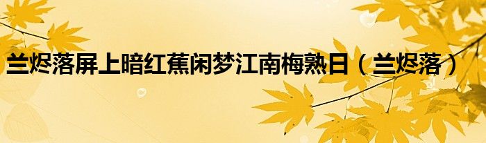 兰烬落屏上暗红蕉闲梦江南梅熟日,兰烬落这个很多人还不知道,小飞来为大家解答以上的问题。现在让我们一起来看看吧!