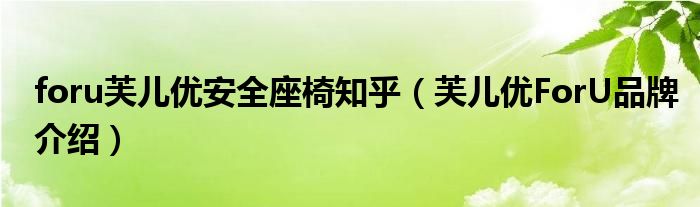 foru芙儿优安全座椅知乎(芙儿优ForU品牌介绍)