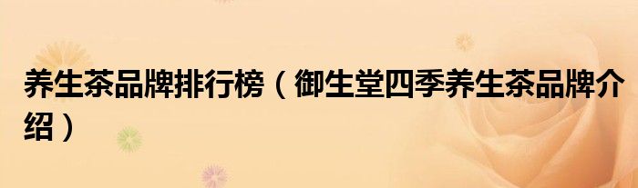 大家好,小源来为大家解答以上问题。养生茶品牌排行榜,御生堂四季养生茶品牌介绍很多人还不知道,现在让我们一起来看看吧!