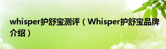 whisper护舒宝测评(Whisper护舒宝品牌介绍)