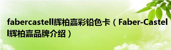 大家好,小源来为大家解答以上问题。fabercastell辉柏嘉彩铅色卡,Faber-Castell辉柏嘉品牌介绍很多人还不知道,现在让我们一起来看看吧!