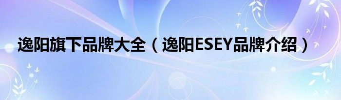逸阳旗下品牌大全(逸阳ESEY品牌介绍)