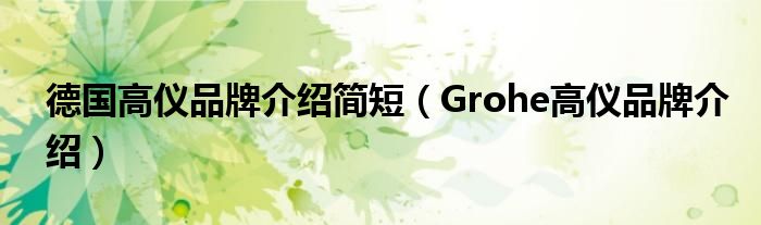 大家好,小源来为大家解答以上问题。德国高仪品牌介绍简短,Grohe高仪品牌介绍很多人还不知道,现在让我们一起来看看吧!
