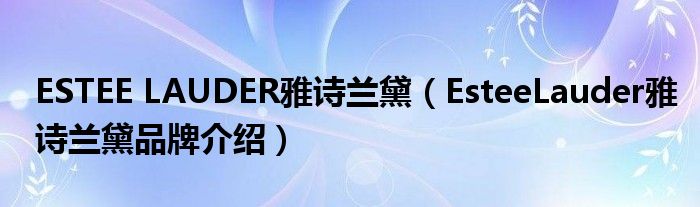 大家好,小源来为大家解答以上问题。ESTEE LAUDER雅诗兰黛,EsteeLauder雅诗兰黛品牌介绍很多人还不知道,现在让我们一起来看看吧!