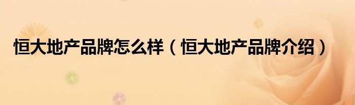 恒大地产品牌怎么样(恒大地产品牌介绍)