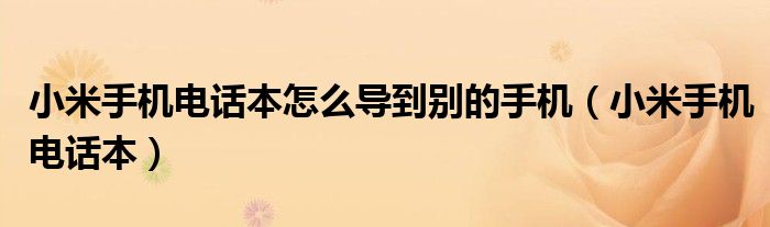 小米手机电话本怎么导到别的手机,小米手机电话本很多人还不知道,乐乐来为大家解答以上问题,现在让我们一起来看看吧!