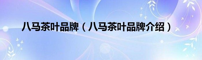 八马茶叶品牌(八马茶叶品牌介绍)
