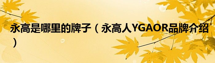大家好,小源来为大家解答以上问题。永高是哪里的牌子,永高人YGAOR品牌介绍很多人还不知道,现在让我们一起来看看吧!