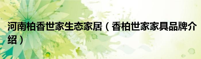 大家好,小源来为大家解答以上问题。河南柏香世家生态家居,香柏世家家具品牌介绍很多人还不知道,现在让我们一起来看看吧!