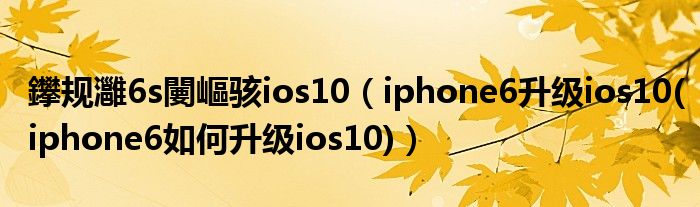 大家好,小常来为大家解答以上问题。鑻规灉6s闄嶇骇ios10,iphone6升级ios10(iphone6如何升级ios10)很多人还不知道,现在让我们一起来看看吧!