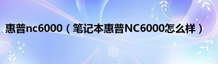 大家好,小常来为大家解答以上问题。惠普nc6000,笔记本惠普NC6000怎么样很多人还不知道,现在让我们一起来看看吧!