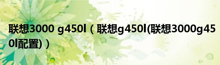 大家好,小常来为大家解答以上问题。联想3000 g450l,联想g450l(联想3000g450l配置)很多人还不知道,现在让我们一起来看看吧!