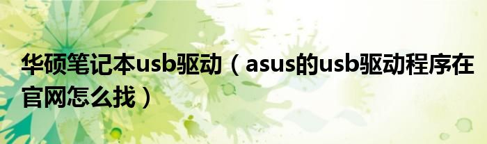 华硕笔记本usb驱动(asus的usb驱动程序在官网怎么找)