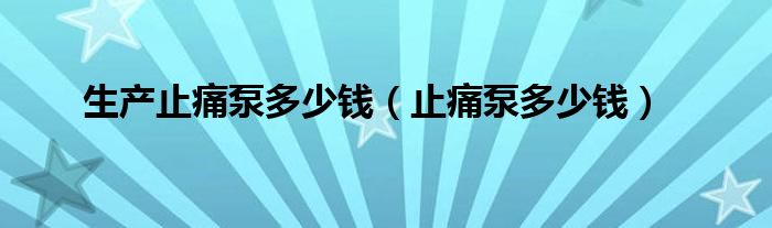 大家好,linda来为大家解答以上的问题。生产止痛泵多少钱,止痛泵多少钱很多人还不知道,现在让我们一起来看看吧!