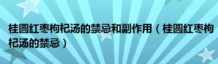 大家好,linda来为大家解答以上的问题。桂圆红枣枸杞汤的禁忌和副作用,桂圆红枣枸杞汤的禁忌很多人还不知道,现在让我们一起来看看吧!