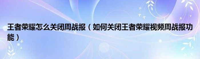大家好,今天小悦来为大家解答以上问题。王者荣耀怎么关闭周战报,如何关闭王者荣耀视频周战报功能很多人还不知道,现在让我们一起来看看吧!