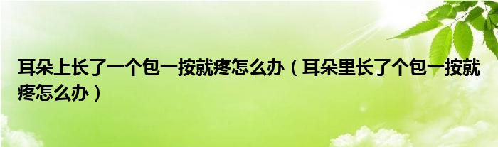 大家好,linda来为大家解答以上的问题。耳朵上长了一个包一按就疼怎么办,耳朵里长了个包一按就疼怎么办很多人还不知道,现在让我们一起来看看吧!
