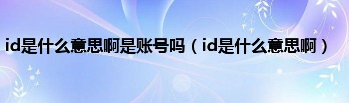 大家好,雨雨来为大家解答以上问题,id是什么意思啊是账号吗,id是什么意思啊很多人还不知道,现在让我们一起来看看吧!