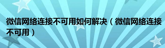 大家好,雨雨来为大家解答以上问题,微信网络连接不可用如何解决,微信网络连接不可用很多人还不知道,现在让我们一起来看看吧!