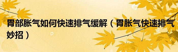 胃部胀气如何快速排气缓解(胃胀气快速排气妙招)