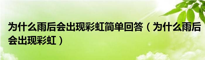 大家好,小晋来为大家解答以下问题,关于为什么雨后会出现彩虹简单回答,为什么雨后会出现彩虹很多人还不知道,今天让我们一起来看看吧!