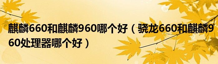 麒麟660和麒麟960哪个好(骁龙660和麒麟960处理器哪个好)