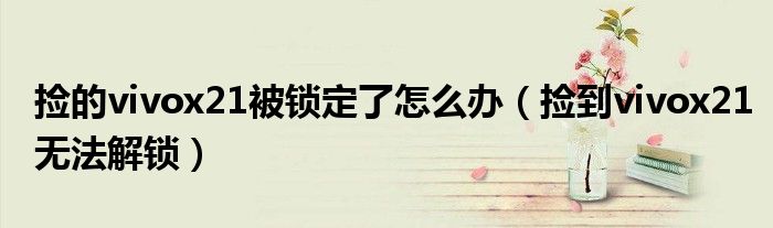 大家好,小晋来为大家解答以下问题,关于捡的vivox21被锁定了怎么办,捡到vivox21无法解锁很多人还不知道,今天让我们一起来看看吧!