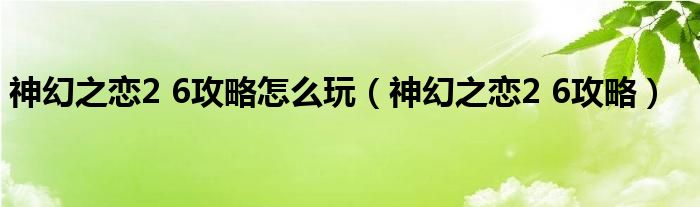大家好,小晋来为大家解答以下问题,关于神幻之恋2 6攻略怎么玩,神幻之恋2 6攻略很多人还不知道,今天让我们一起来看看吧!