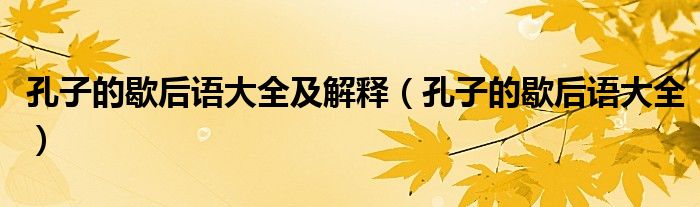 大家好,小晋来为大家解答以下问题,关于孔子的歇后语大全及解释,孔子的歇后语大全很多人还不知道,今天让我们一起来看看吧!