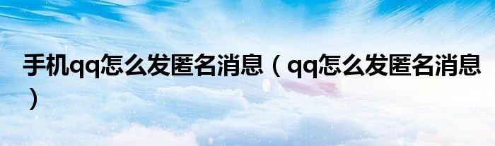 大家好,小晋来为大家解答以下问题,关于手机qq怎么发匿名消息,qq怎么发匿名消息很多人还不知道,今天让我们一起来看看吧!