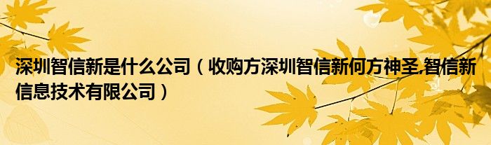 深圳智信新是什么公司(收购方深圳智信新何方神圣,智信新信息技术有限公司)