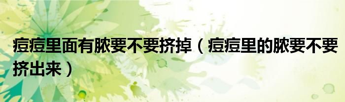 大家好,linda来为大家解答以上的问题。痘痘里面有脓要不要挤掉,痘痘里的脓要不要挤出来很多人还不知道,现在让我们一起来看看吧!