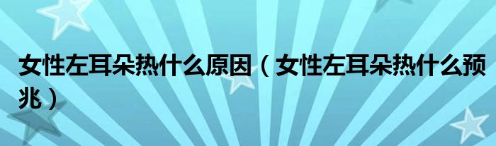 大家好,linda来为大家解答以上的问题。女性左耳朵热什么原因,女性左耳朵热什么预兆很多人还不知道,现在让我们一起来看看吧!