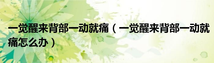 大家好,linda来为大家解答以上的问题。一觉醒来背部一动就痛,一觉醒来背部一动就痛怎么办很多人还不知道,现在让我们一起来看看吧!