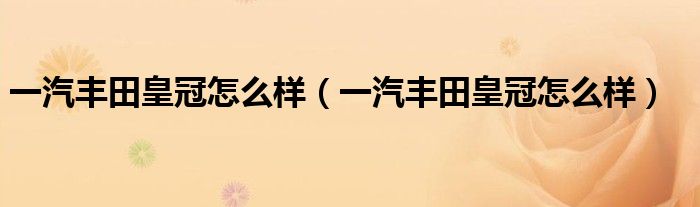 大家好,阳阳来为大家讲解下。一汽丰田皇冠怎么样,一汽丰田皇冠怎么样很多人还不知道,现在让我们一起来看看吧!