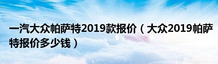 大家好,阳阳来为大家讲解下。一汽大众帕萨特2019款报价,大众2019帕萨特报价多少钱很多人还不知道,现在让我们一起来看看吧!