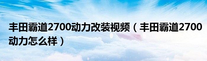 丰田霸道2700动力改装视频(丰田霸道2700动力怎么样)