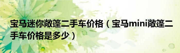 大家好,阳阳来为大家讲解下。宝马迷你敞篷二手车价格,宝马mini敞篷二手车价格是多少很多人还不知道,现在让我们一起来看看吧!