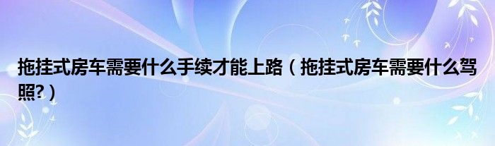 大家好,小美来为大家解答以上问题。拖挂式房车需要什么手续才能上路,拖挂式房车需要什么驾照?很多人还不知道,现在让我们一起来看看吧!
