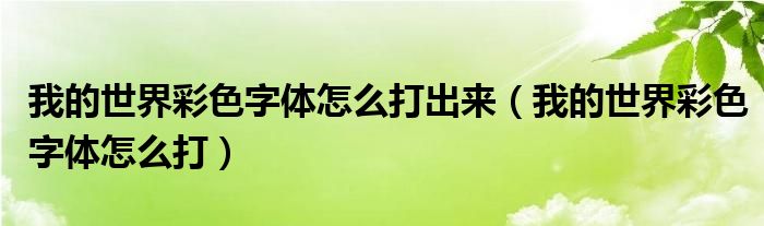 关于我的世界彩色字体怎么打出来,我的世界彩色字体怎么打这个很多人还不知道,今天菲菲来为大家解答以上的问题,现在让我们一起来看看吧!