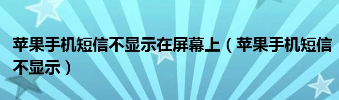 关于苹果手机短信不显示在屏幕上,苹果手机短信不显示这个很多人还不知道,今天菲菲来为大家解答以上的问题,现在让我们一起来看看吧!