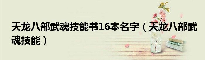 关于天龙八部武魂技能书16本名字,天龙八部武魂技能这个很多人还不知道,今天菲菲来为大家解答以上的问题,现在让我们一起来看看吧!