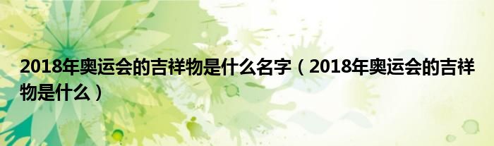 关于2018年奥运会的吉祥物是什么名字,2018年奥运会的吉祥物是什么这个很多人还不知道,今天菲菲来为大家解答以上的问题,现在让我们一起来看看吧!