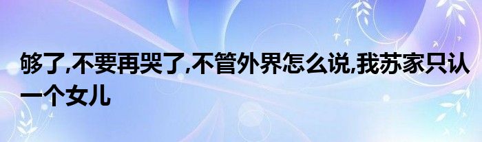 关于够了,不要再哭了,不管外界怎么说,我苏家只认一个女儿这个很多人还不知道,今天菲菲来为大家解答以上的问题,现在让我们一起来看看吧!